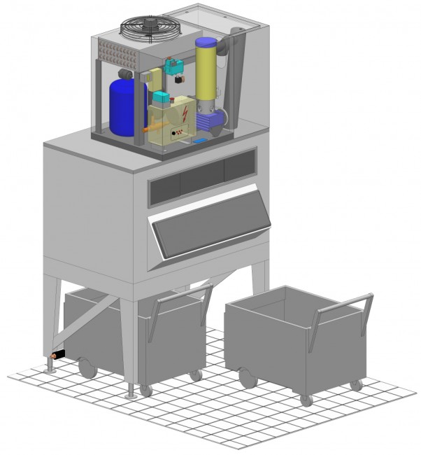 - niskie zużycie energii i wody (z 1 l wody 1 kg lodu, 68kWh na tonę lodu)
