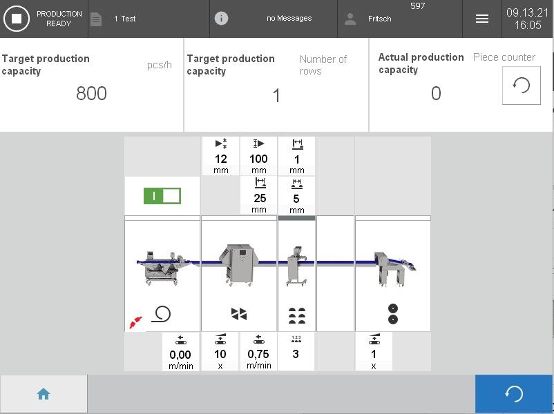 Na początku linii znajduje się seryjna głowica kalibrująca, która poprzez podawanie ciasta z wałka gwarantuje ciągłość i jednolitość pod względem wagowym wstęgi. Głowica eliminuje konieczność podmiany wałków z kończąca się wstęgą, nie ma potrzeby kolejno łączenia wstęg, praca jest nieprzerwana. Napęd taśmy z impulsatorem dba o absolutnie równomierny transport wstęgi ciasta. Powoduje to m.in. dokładne sterowanie długością cięcia oraz pewne uchwycenie punktu nadziewania.