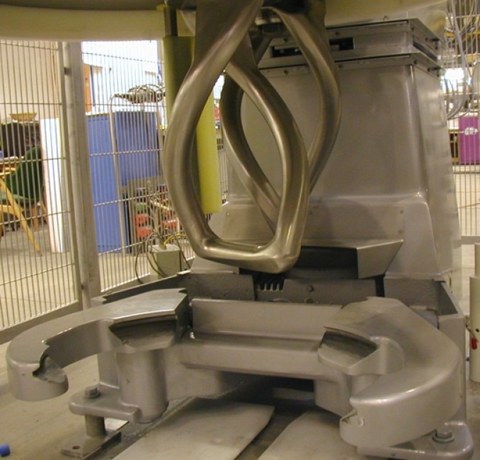 Zasada działania: Urządzenia wykonują ruch obrotowy w przeciwnych kierunkach. Wskutek modyfikacji tego systemu zmieniono kąt skręcania. Narzędzia skierowane w dół podczas obracania pozwalają zebrać od razu z dna mieszarki najmniejsze ilości ciasta i wprowadzić w zakres pracy opatentowanego mieszadła. Tym samym wszystkie zalety mieszarki Wendelkneter mogą być wykorzystane już przy zapełnieniu dzieży w ilości 1/3. Mieszadła opuszczane są od góry i wkładane do obracającej się już dzieży. Dzięki temu niezbędne naciąganie i pęcznienie (utrząsanie) surowców osiągane jest na etapie powstawania ciasta. Ten szczególny rodzaj mieszadła sprawia, iż ciasto miesione jest intensywnie i bardzo szybko /do 5 000 kg ciasta na h/, TA wzrasta o 1-2%, a mimo to ciasto nie ulega przegrzaniu. Nowe wyprofilowanie mieszadeł redukuje skłonność do pięcia/podnoszenia się ciasta w górnym zakresie urządzenia.
